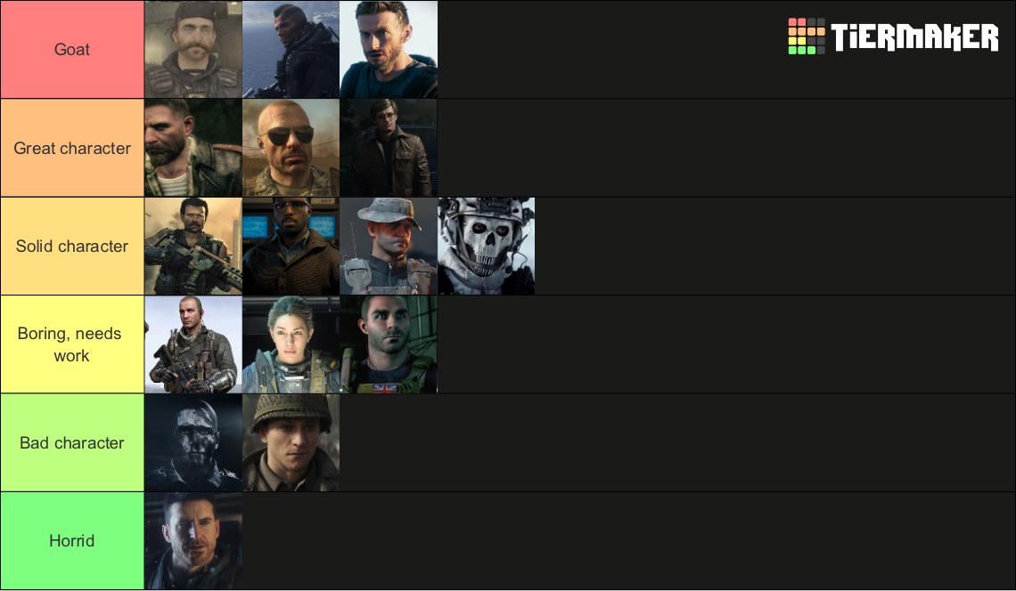 Note, didn’t include BO4 cause no campaign, and both VG and BO7 had a large cast of main protagonists rather than a protagonist then deuteragonist.