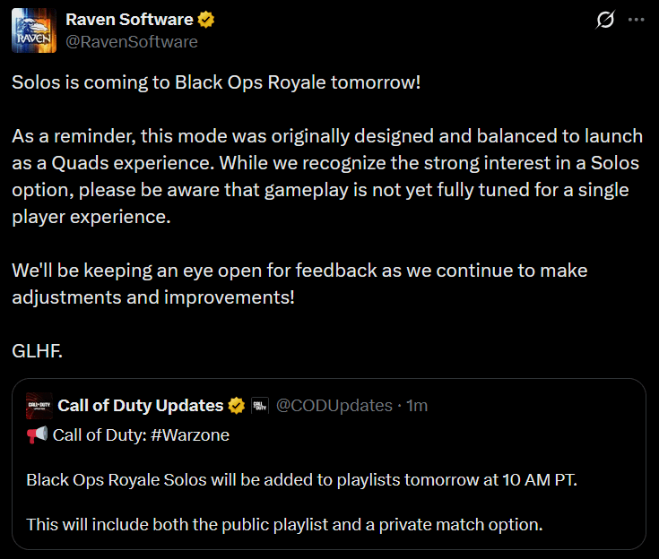 Solo is coming tomorrow in Black Ops Royale