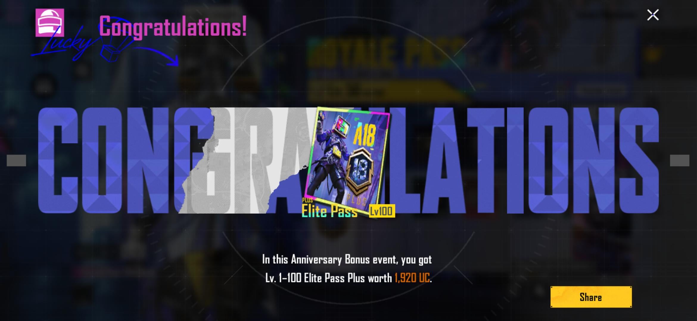 Thanks PUBG Mobile! First time getting the Elite Pass Plus and it ended up being free πŸ˜„