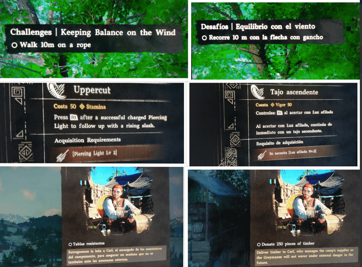 It completely changes the text of some, quests, challenges and even skills, making some impossible to do until you realize the whole translation is garbage, I spent 30 minutes trying to do the uppercut combo I thought i was missing the timing but it turns out the whole skill description is mistaken on the spanish translation, same with the quest and challenge above, It doesnt make any sense, maybe AI did the translation or just some Korean that barely knew the language? Its not like a silly mistake either it makes some parts of the game completely unplayable in spanish since what you are being ask to do cant even be done