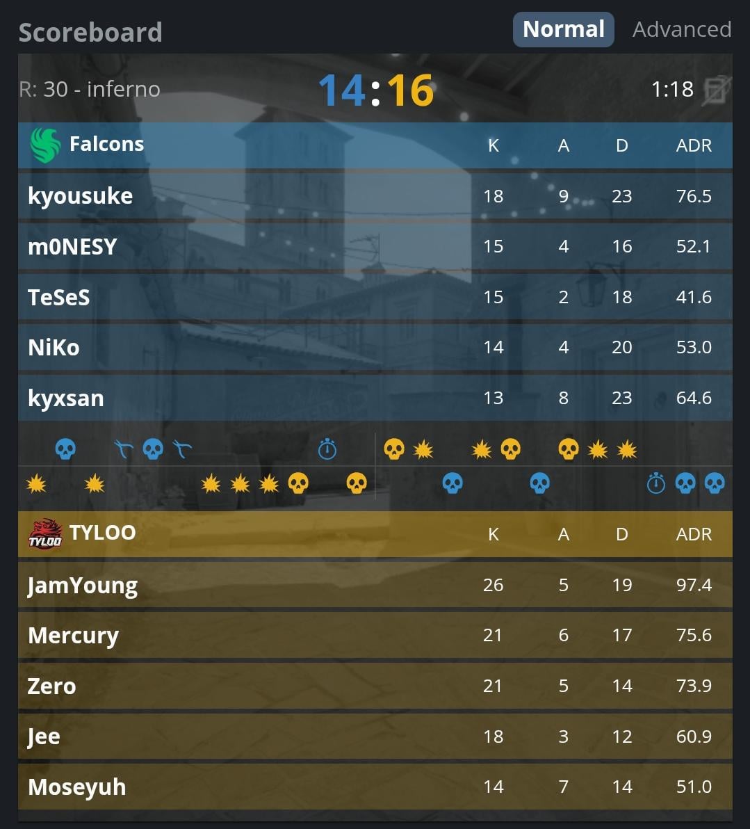 Tyloo takes the 1st map against Falcons