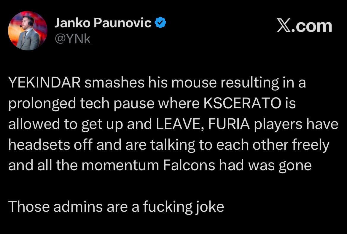 ynk reaction to tech pause during Falcons vs Furia game