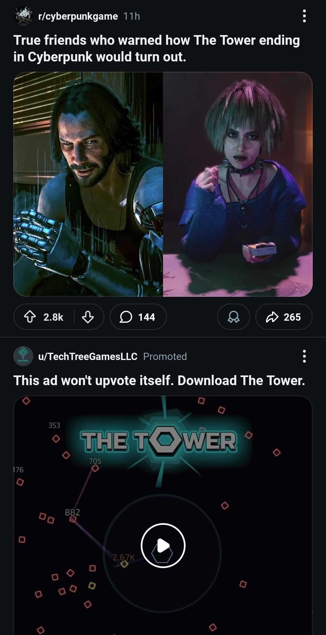 Share Facebook Twitter Pinterest LinkedIn Reddit moment: when the advertisement lines up with the post Cyberpunkcyberpunk 2077cyberpunk game