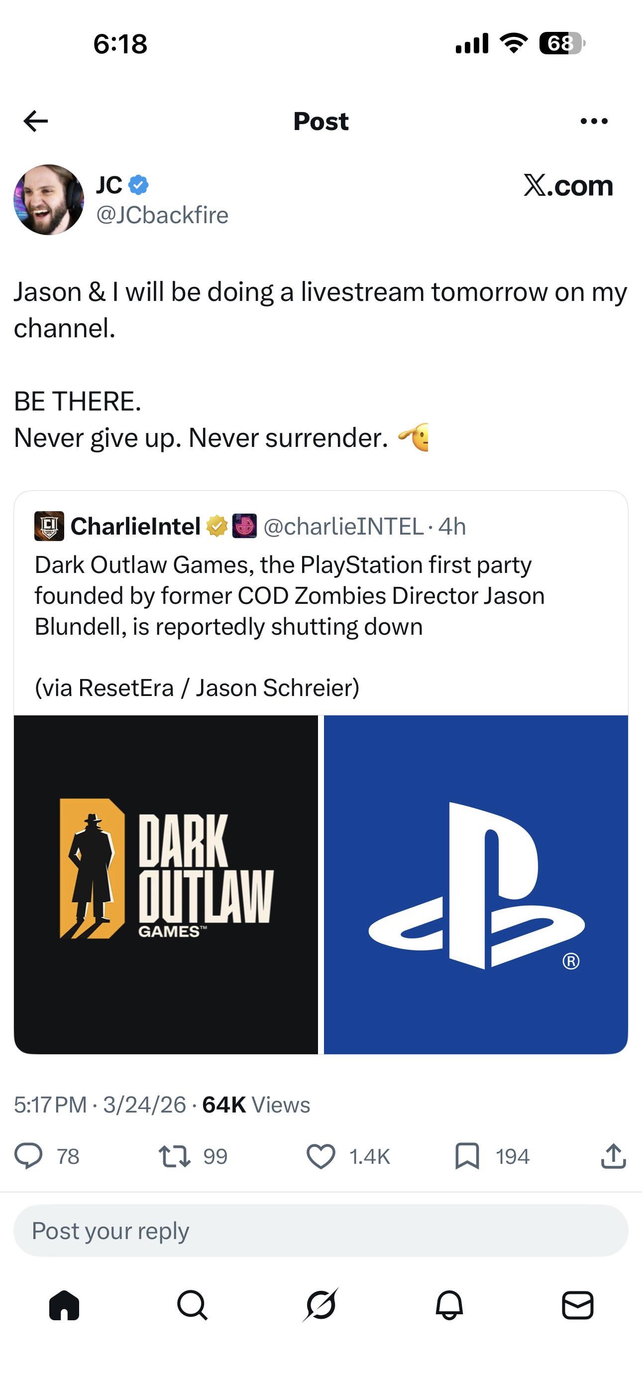 Jason Blundell will make a live appearance with Jc backfire tomorrow
