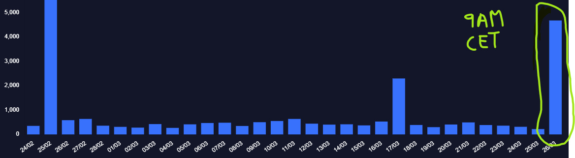 There's been 1000 or so at 9am CET before, but never 4000+