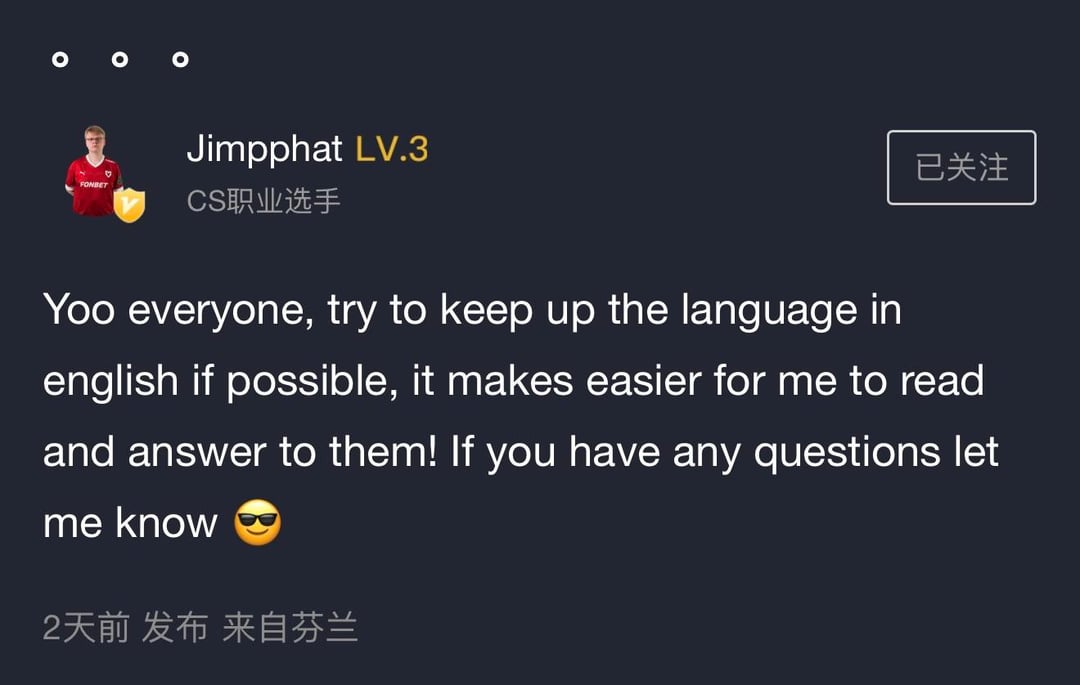 At the same time, he also joined the Perfect World APP for high-intensity interaction with Chinese CS players, showing us a different side of Jimmy.
