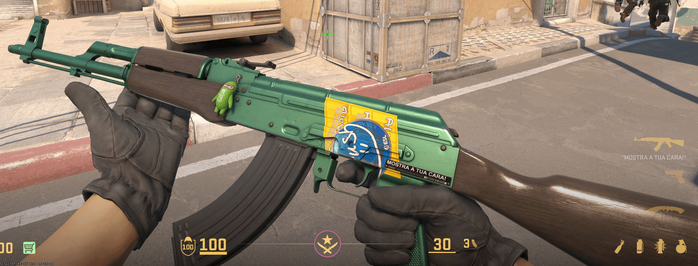 I called it "MOSTRA A TUA CARA!" (reference to a popular brazilian protest song by Cazuza), that translates to "show your face!". I used 3 Aleksib Copenhagen 2024 stickers for the yellow diamond and one Crush Katowice 2019 sticker for the blue circle ( it adds a nice detail 'cause of the white line in the middle). Both the skin and the stickers are pretty cheap, and I believe the ending result is the best I've seen so far. Here's the code to inspect it with Cs2Inspect: