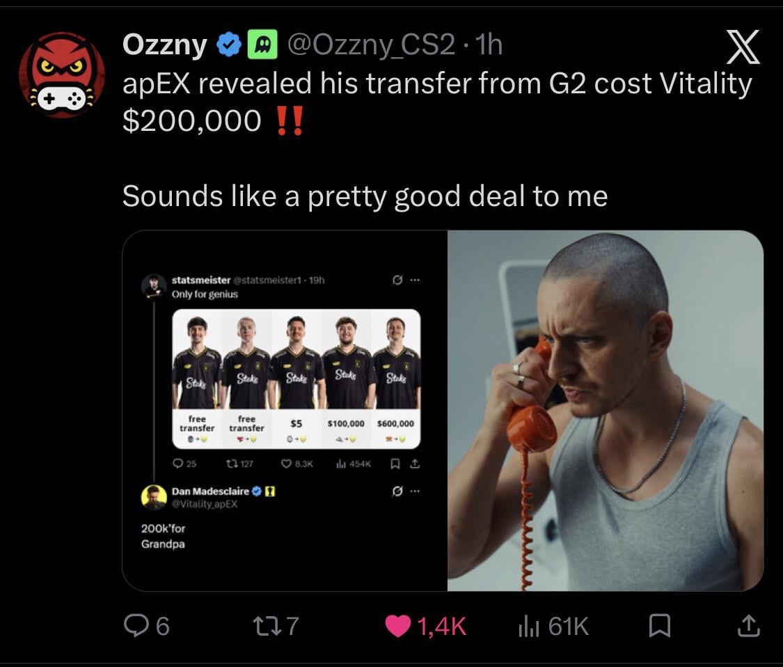 apex cost revealed (from G2 bench to VIT) Counter strikecounter strike global offensivecs:goGlobal offensive