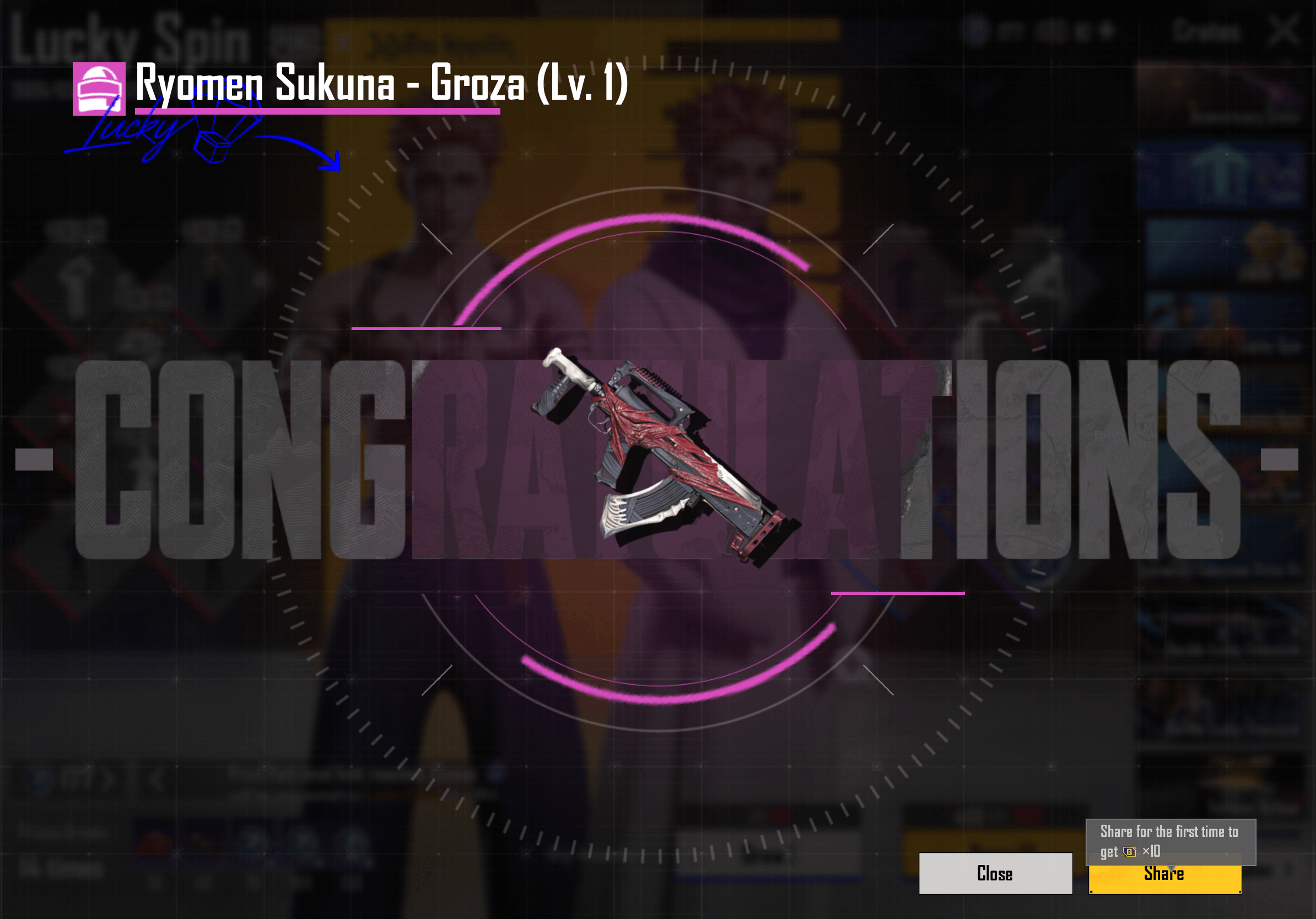 Wow this is luckiest ive ever been ..I seen this groza in the crate and wasn’t a fan of all the other stuff and dont have much uc anyway.ive done some 10uc spins thinkin ill never get it and bang I just did a 10uc spin and walked off and heard a noise come back and seen a congratulations the groza.