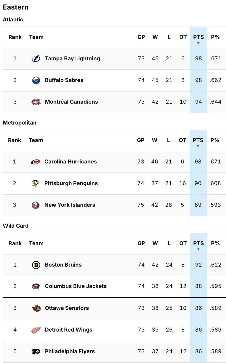 Checking in on the East’s Wild Card race, via NHL.com. The Red Wings are two points back of the Wild Card line, the same position as the Ottawa Senators and Flyers. All three teams have a game in hand over the current WC2 Columbus Blue Jackets.