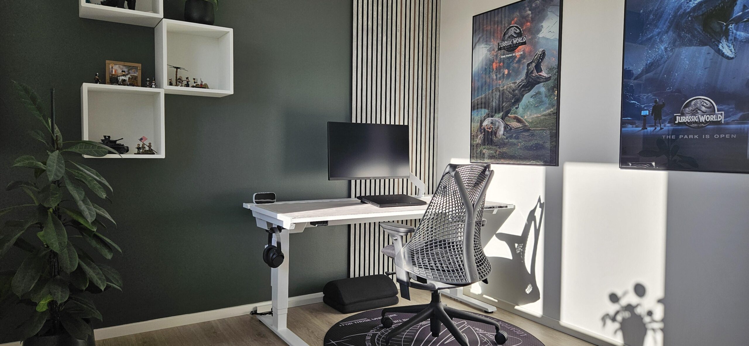 I have however added 3 LED strips in the acoustic wall, which can be adjusted via either the remote control or the HUE app.