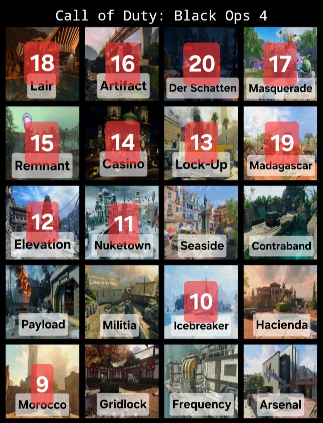 Please note: Remakes and weather variants were not included in this ranking, as I don't really care for those if I'm being honest. The only remake I included was Nuketown since it at least looked different.