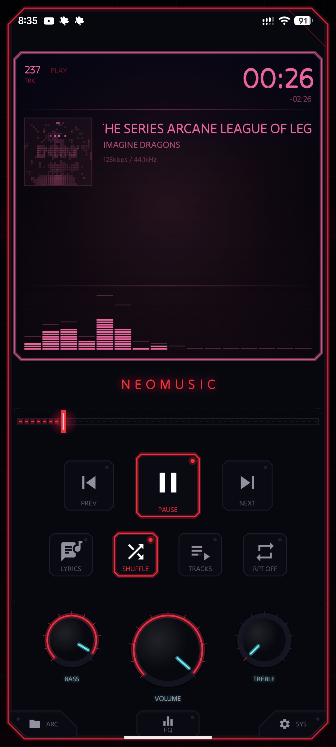 - Equalizer right in the player screen