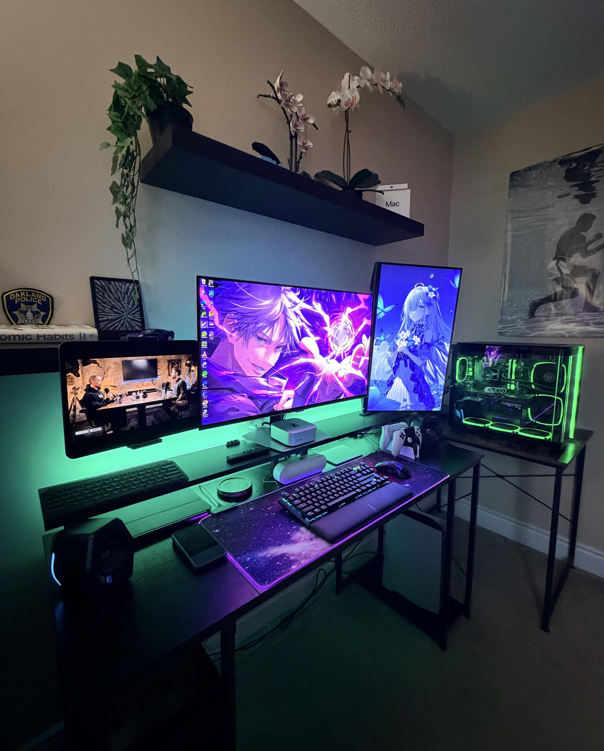 Current set up until I can get the two Ikea Alex drawer pairing with a Lagkapten tabletop combination. Just splurged on the OLED & rtx 5080 rig, so that won’t be for a while!Yes, that is an iPad pro mounted as a third display. Battle StationsBattlestations