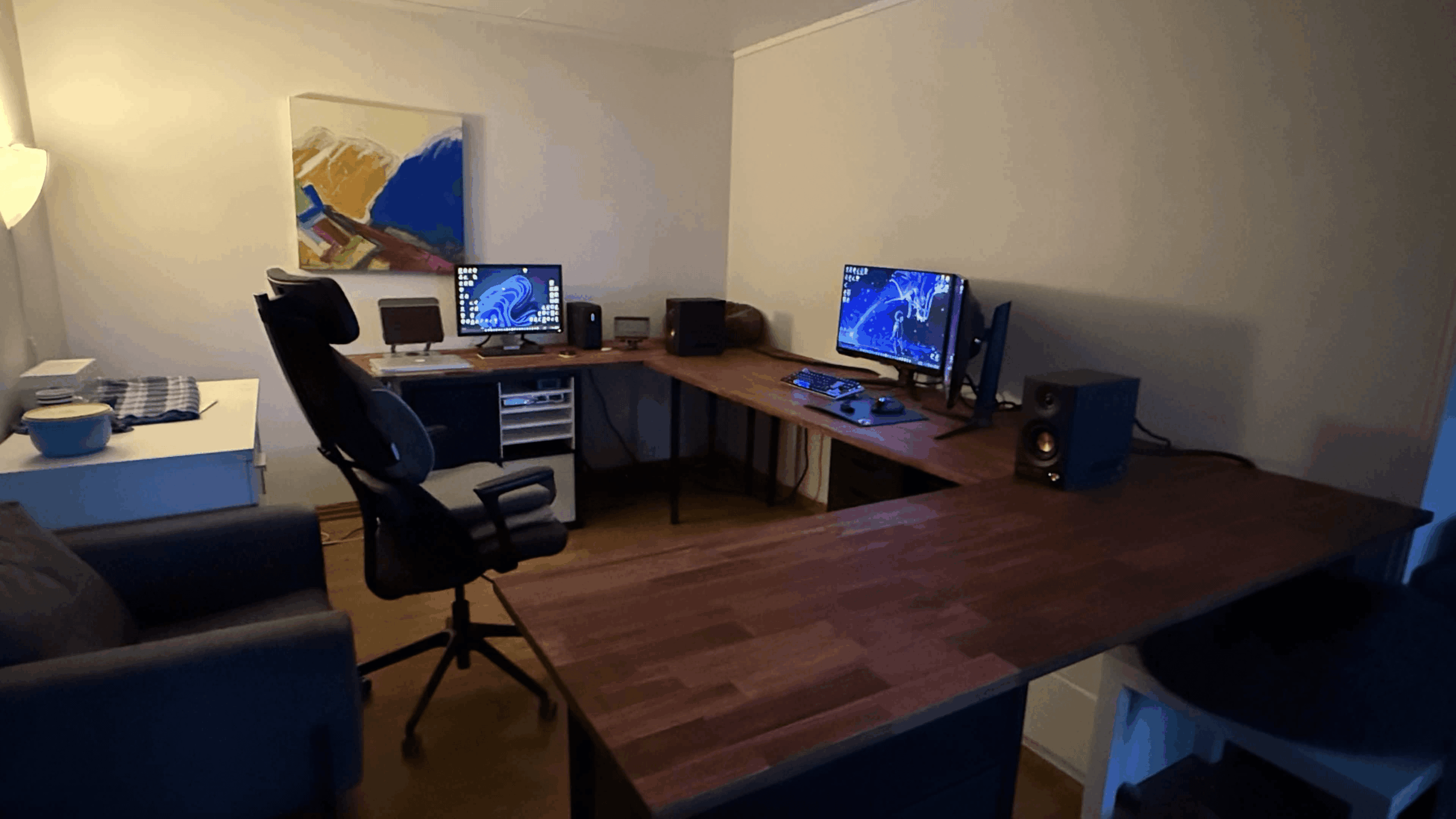 For the left desk I plan on getting a TV for the left wall (and remove the painting)