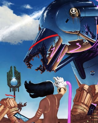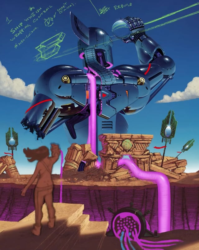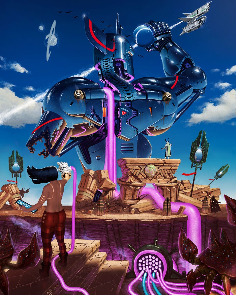 I have a title ("Hacking the Oracle") but I'd love to read your caption ideas. No AI was used in this painting. Process images included. Procreate, about 2 weeks.