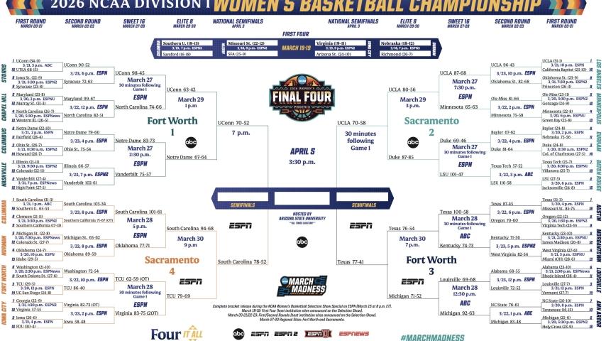 Here is the official bracket for the 2026 NCAA Division I women’s basketball tournament. Get the bracket, schedule and scores here.