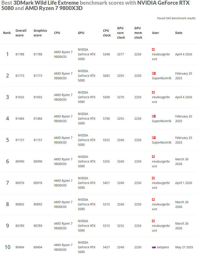 Top 1 đ RTX 5080 Wilf Life Extreme 9800X3D