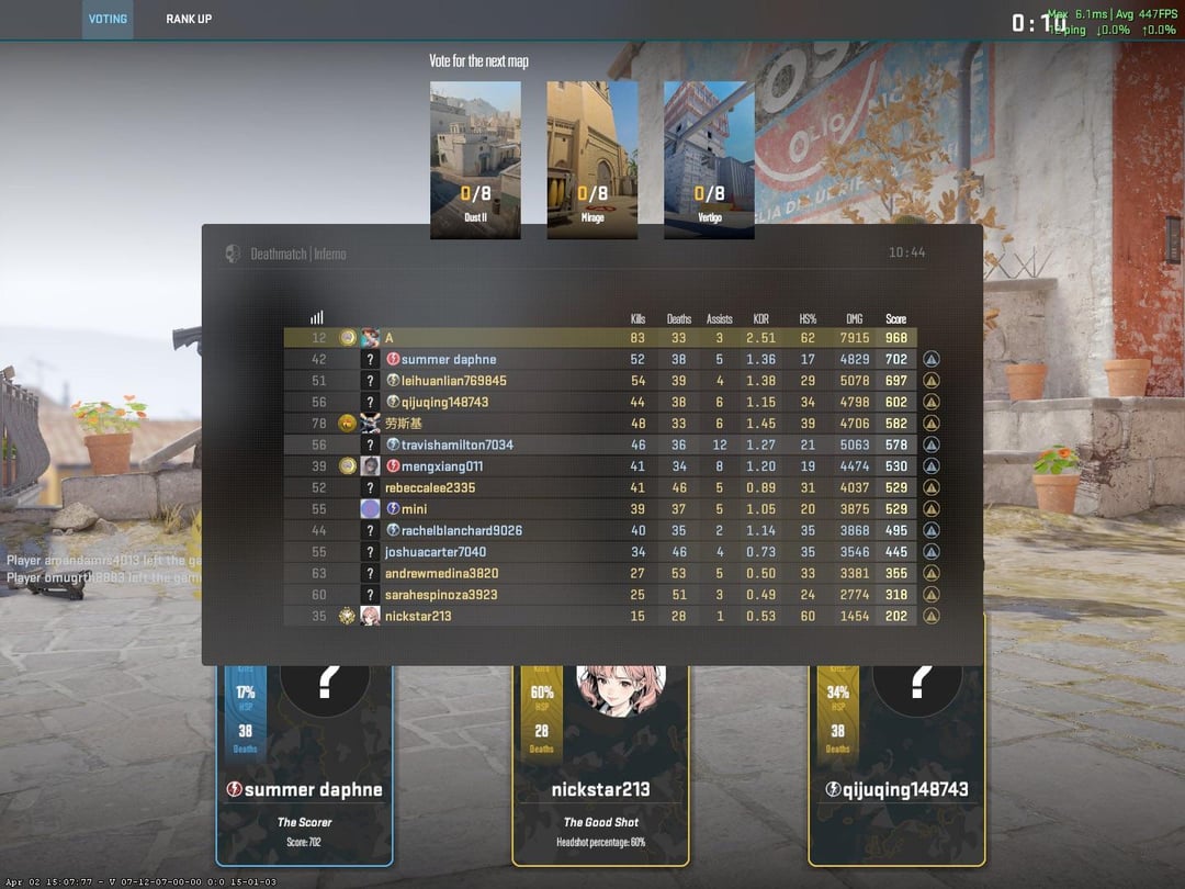 Bottom frag 1st. It’s just a death-match but I’m wondering why.