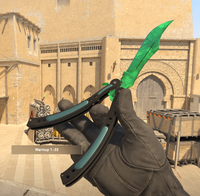 Hopped on to play with my boyfriend and pulled a 0.03 float butterfly emerald
