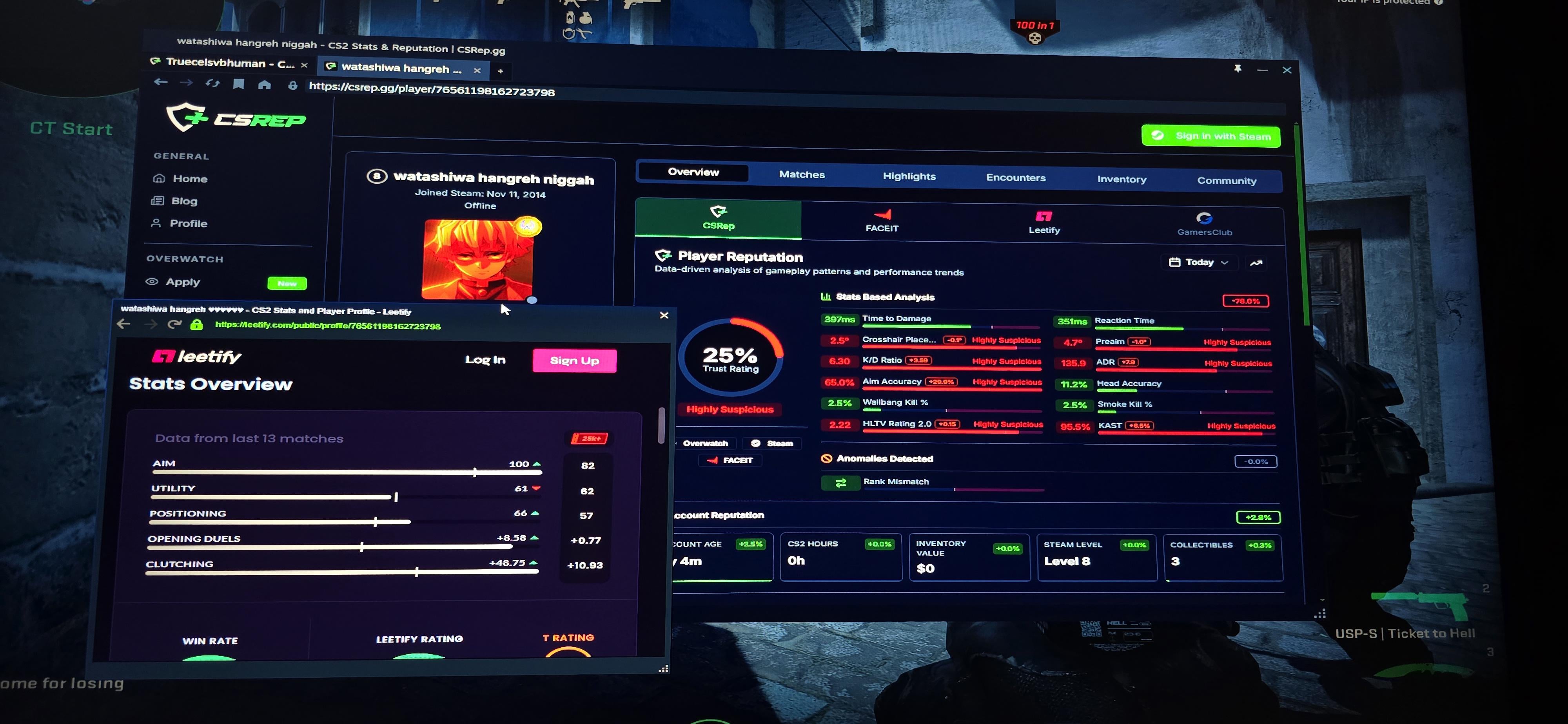 kind of players ive been gettingidk what to say anymorešand yh im in red trust for 4 month even after spending $150 on skins from steam market counter strike 2cs2