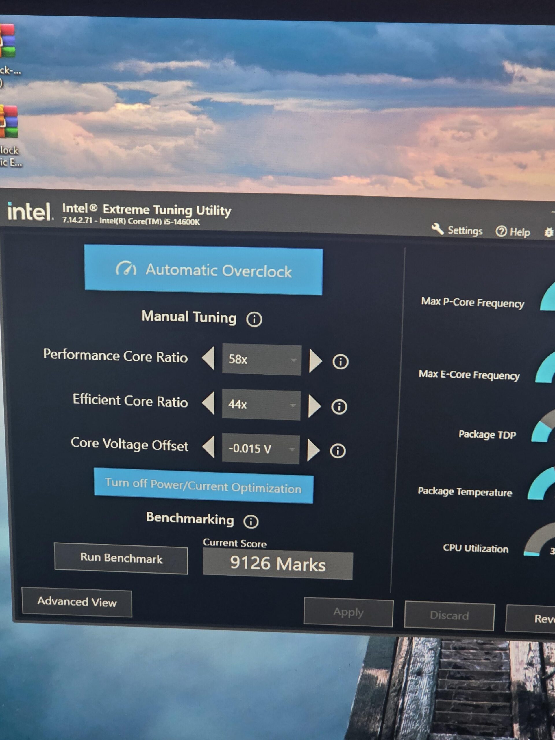 I have a 14600k i bought from Walmart a year ago for 165$ i first used it with a corsair 240 Nautilus then switched from a 360 elite corsair, another change i made was the case and psu, and putting washers on between the aio standoff and the motherboard so the screws would reach and it not wobble. I was wondering what fellow 14600k/kf users were getting in XTU oc or not. also i only have reddit on my phone, don't come at me for taking a pic of my pc screen