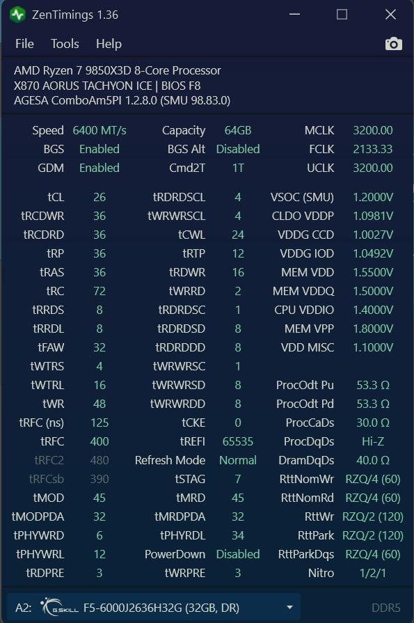 I can't believe it's doing 6400MT/s CL26 FCLK 2133 @ VSOC 1.2