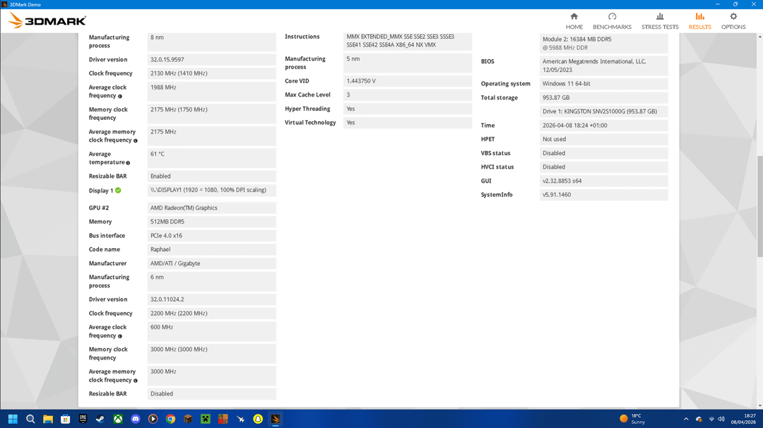 Benchmark was taken 1080p and scored 3086