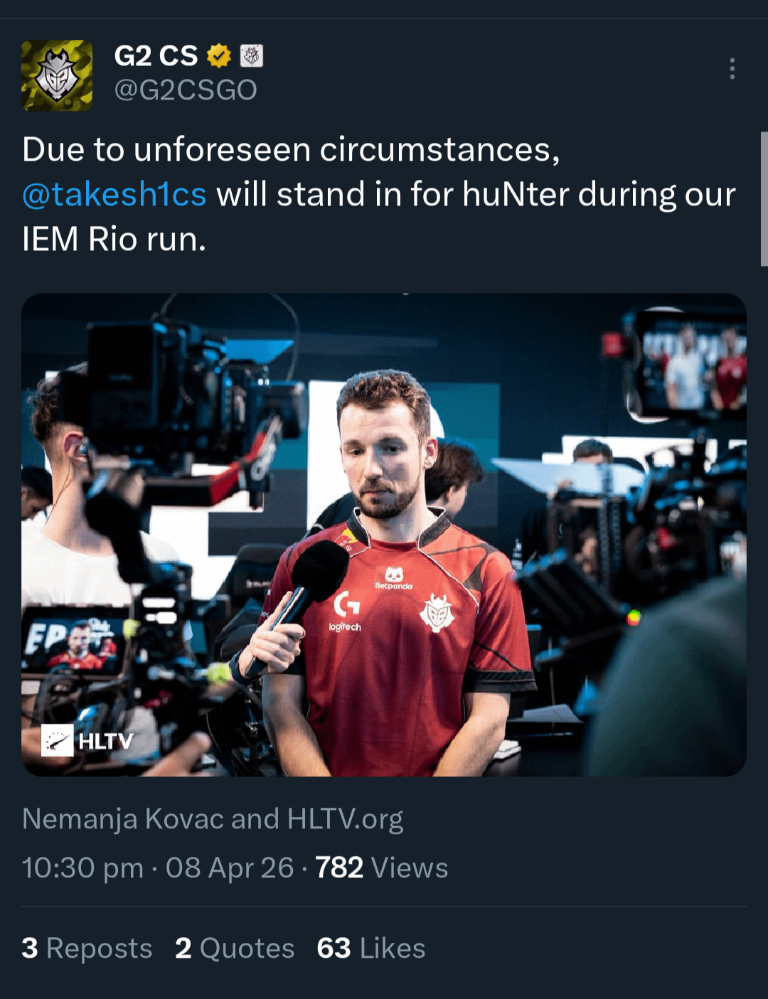 Share Facebook Twitter Pinterest LinkedIn tAk from G2 Ares will sub in for hunter due to hunter’s injury to leg Counter strikecounter strike global offensivecs:goGlobal offensive