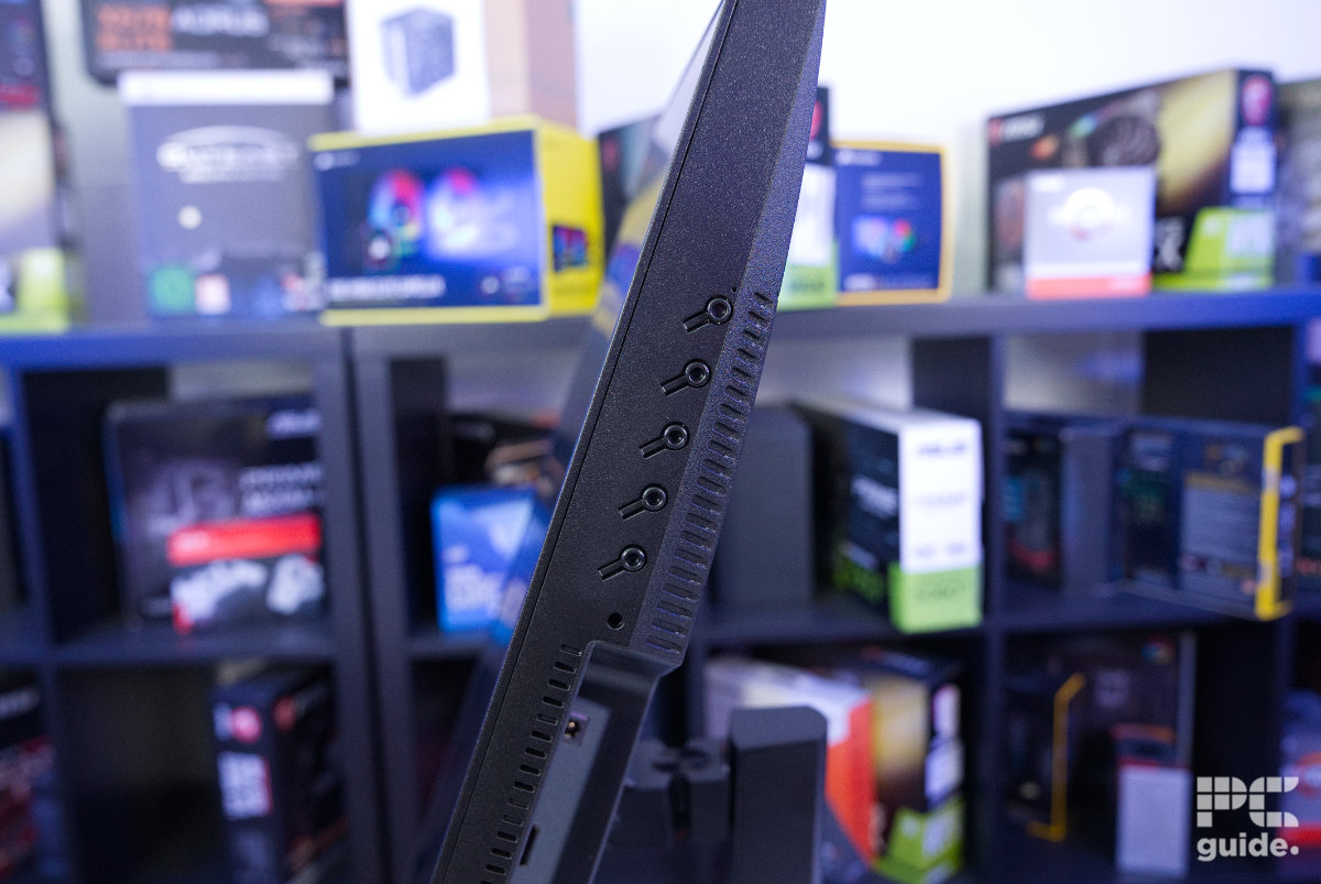 The bottom of the monitor is where the various OSD controls can be found. These are split into five separate buttons instead of the usual joystick control. With some light notation on the front, it can be a bit hard to figure out what each one does, but after a while, it can be easy to navigate the OSD through the rather tactile buttons.