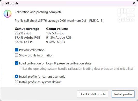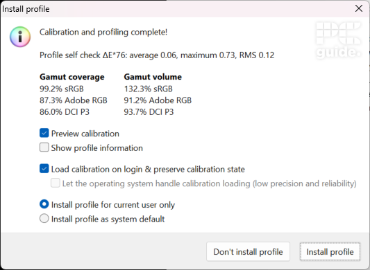The Adobe RGB and DCI-P3 spectrums, on the other hand, aren’t so good. Both at 87% and 86%, even after calibrating the display, I wasn’t able to get that coverage any better. So, while not the worst we’ve ever seen, we still wouldn’t recommend this for color-accurate work in this specific gamuts.