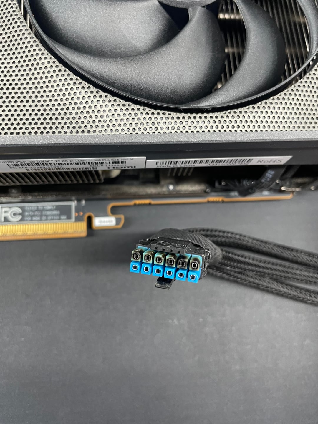 This came into my service area the other day. Card was able to run basic benchmarks but at random times, would black screen. Cable shown is the included 3 8pin to 12Vhpwr in box.