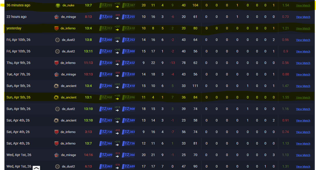 And no, my history is not cooked. You can see that in the 2nd screenshot. The highlighted matches are vs 5 stacks.
