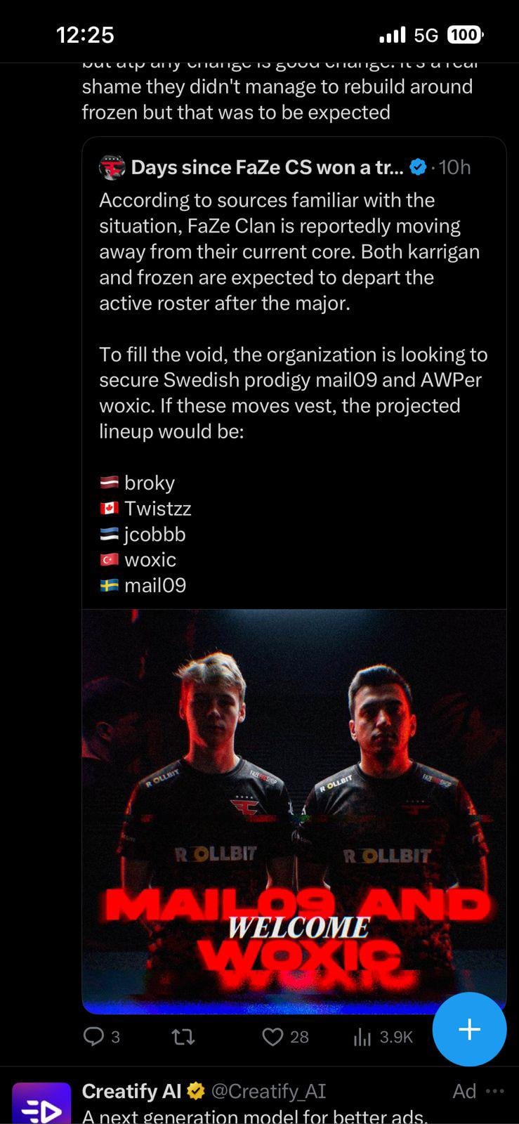 Faze need new energy, I feel broky could be a decent rifler or maybe they are just keeping him to maintain the vrs, all in all, this does seem kinda interesting Counter strikecounter strike global offensivecs:goGlobal offensive
