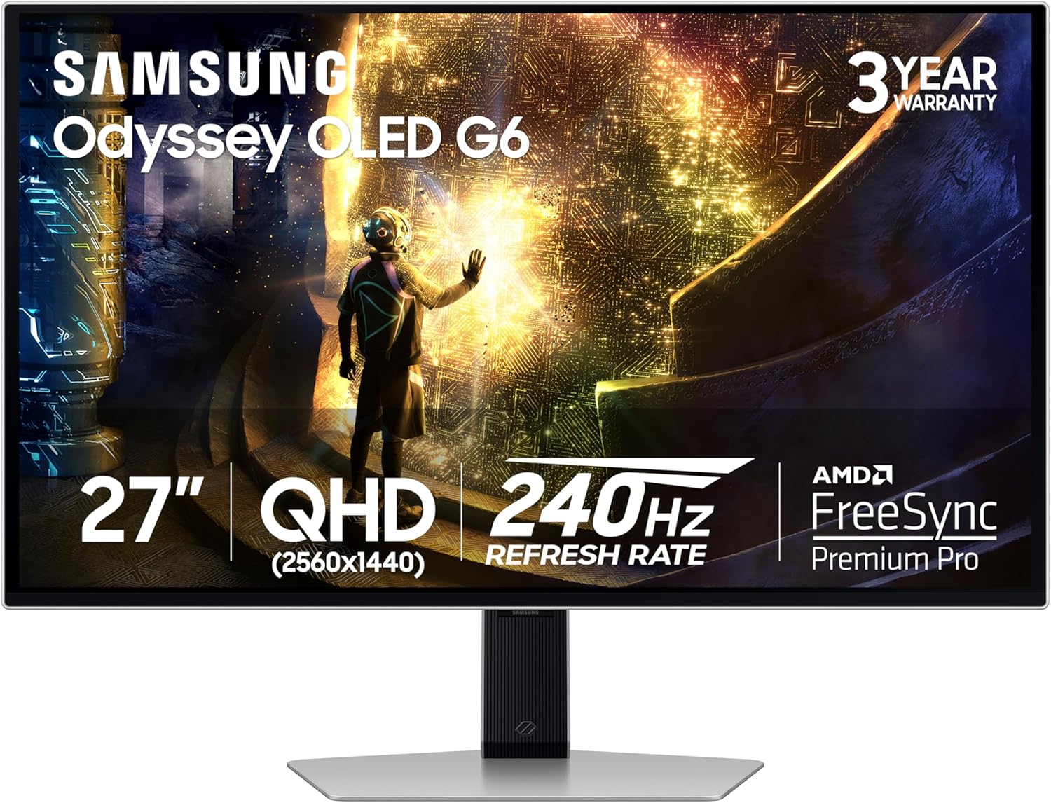 QHD & QD-OLED 240Hz 0.03ms FreeSync Premium Pro Gaming Monitor with Sleek Metal Design, 3 Year Warranty, US, LS27DG610SNXZA, 2024
