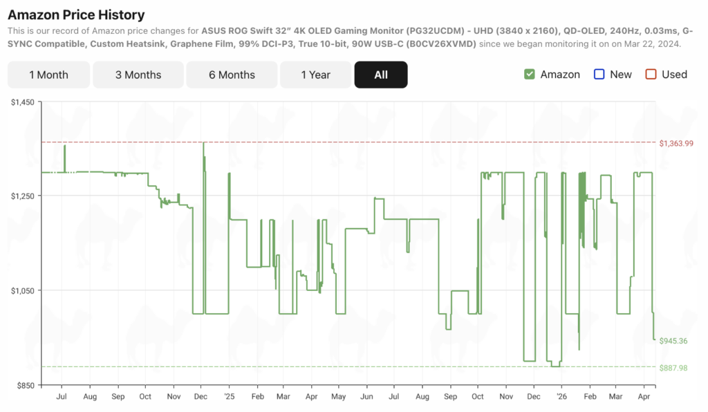 This brilliant ASUS ROG Swift QD-OLED gaming monitor is currently just over $350 off at Amazon, and has been reduced from $1,299.00 to $945.36. It’s 4K and 240hz, with a stunning QD-OLED display with outstanding 99% DCi-P3 color, a 1.5M: 1 contrast ratio, and has an impressive VESA DisplayHDR 400 True Black certification. On top of that, it’s loaded with anti-burn solutions, ranging from physical heatsinks and vents to advanced burn-in protection technology via its OLED Care software suite. For high-end 4K gaming PC builds, this is the type of monitor that’s going to showcase games at their best, and provide you with a large screen for watching content, productivity, and content creation, too.