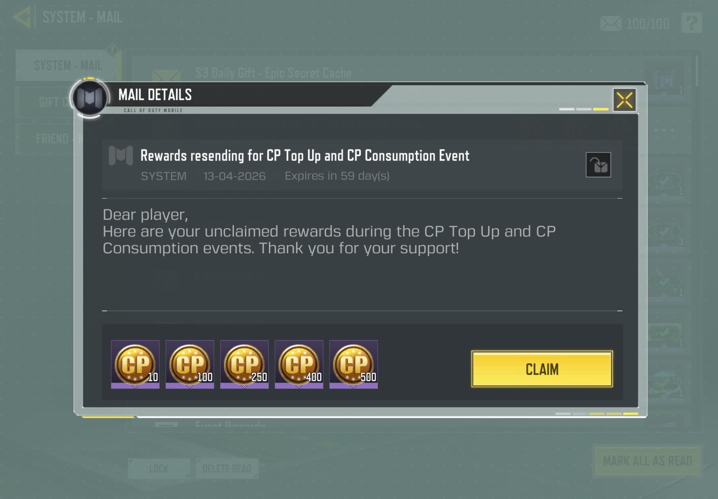 since the event ended, where did i have to claim the cp milestone in the first place before they send it to my system-mail to claim?? call of dutycall of duty mobilecodCOD MOBILE