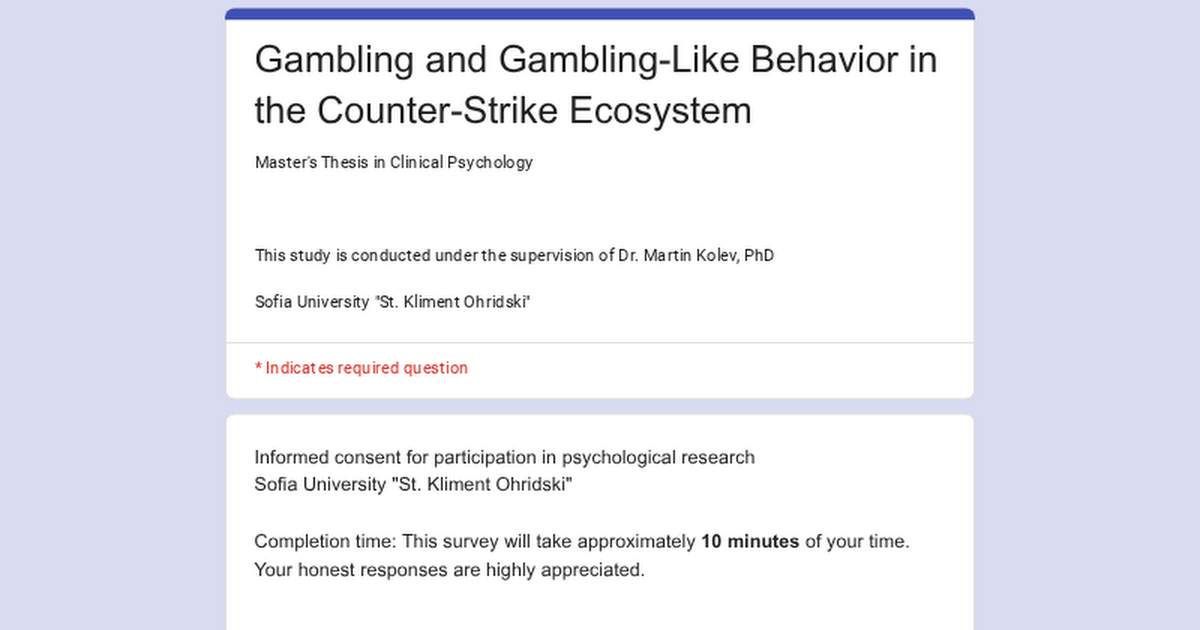 I’m researching the link between player behavior and personality for my Master’s thesis in Clinical Psychology. I need CS2 players to fill out a quick, anonymous survey about how you interact with skins, cases, and trading.