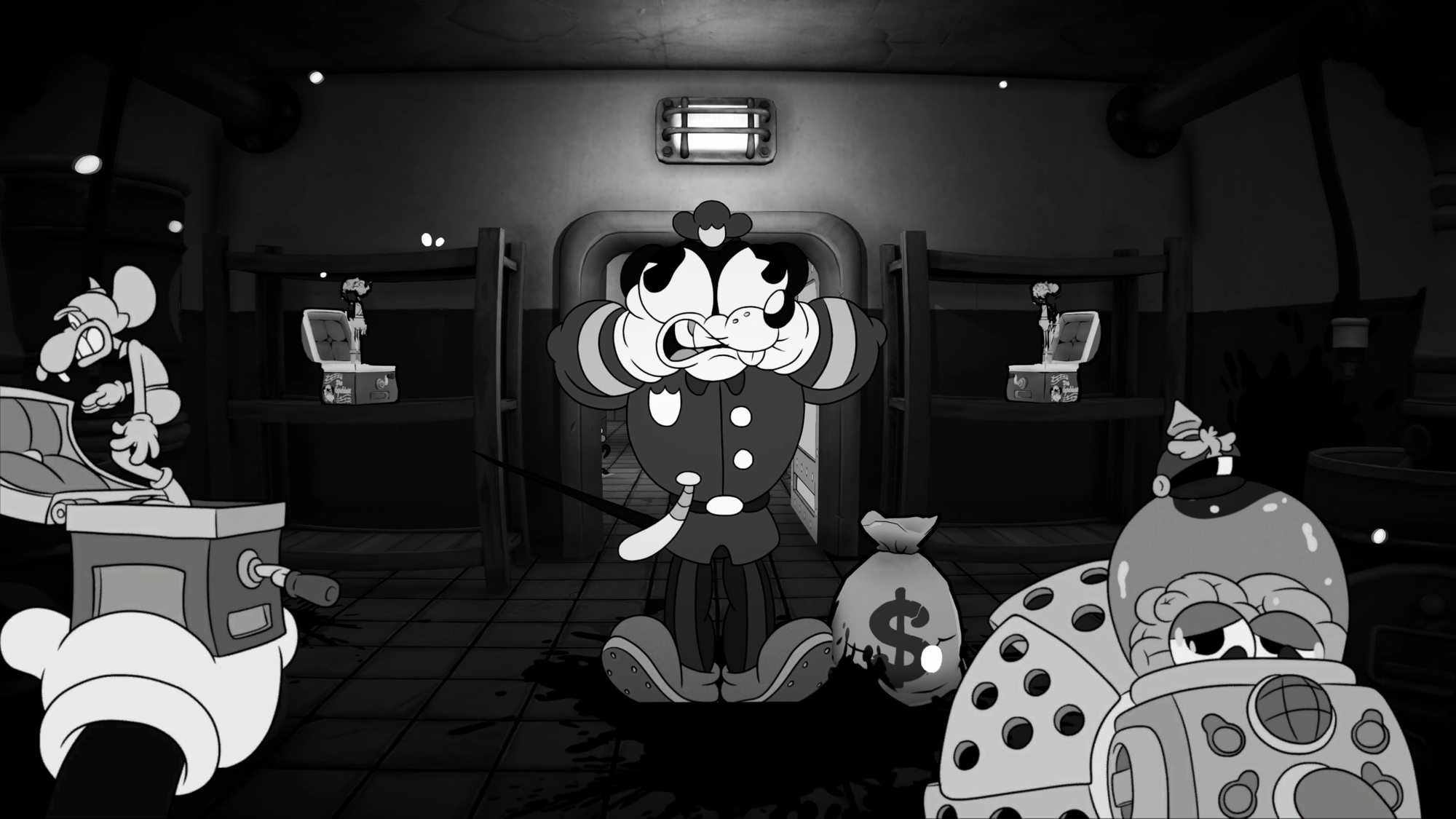 The first thing that catches your attention is an immaculately crafted world. The choice of rubber hose animation is not only the right one, but the implementation is handled expertly. Each part of MOUSE’s art style has care behind it, and you can tell by just how well it all works together. Whether it’s the cartoon cutscenes, the standee-like character models, the detailed animations of NPC movements, or the way the guns react to being fired, Fumi Games has nailed MOUSE’s classical aesthetic. Cuphead may be thought of as the best rubber hose animated game ever made, but MOUSE arguably takes the crown.