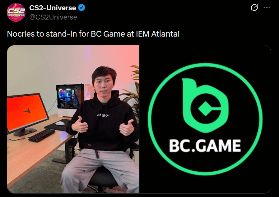 Nocries will stand-in for BCG at IEM Atlanta in May