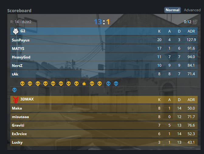 G2 win 13 consecutive rounds against 3DMAX who eliminated Liquid yestarday