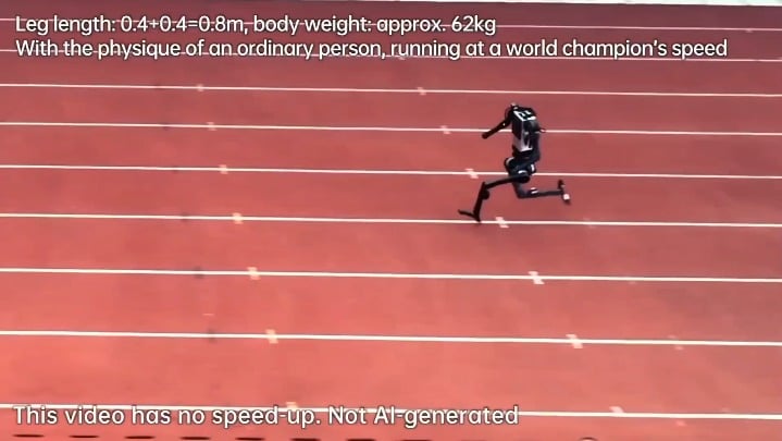 The Unitree H1 humanoid robot achieving a peak speed of 10 meters per second (22.4 mph or 36 km/h), making it one of the fastest humanoid robots in the world.