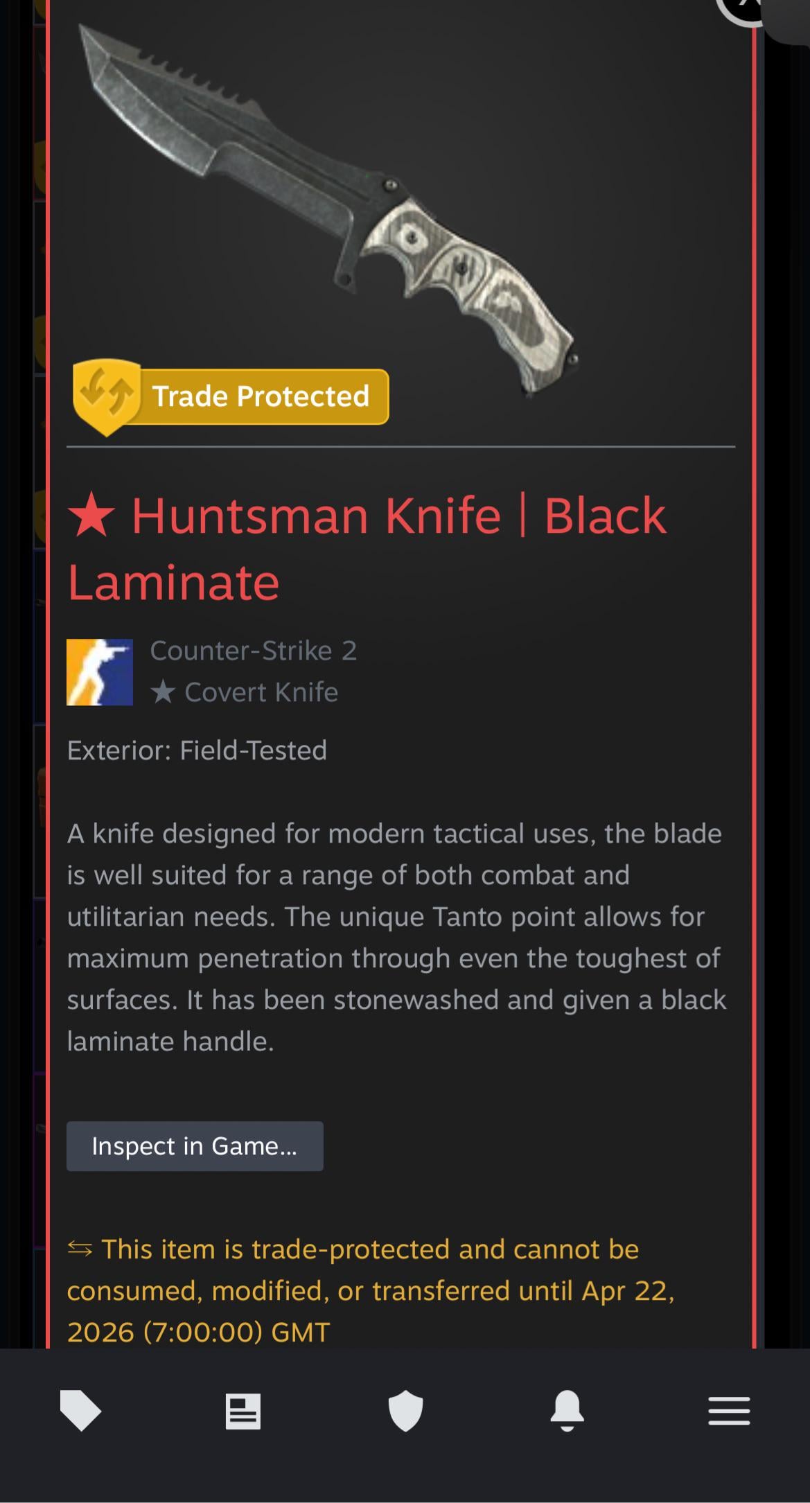 0.189 float Bought for around 77 usd I don’t really like the knife that much but I got it because it matches great with the default gloves so that’s mostly why I bought it. counter strike 2cs2