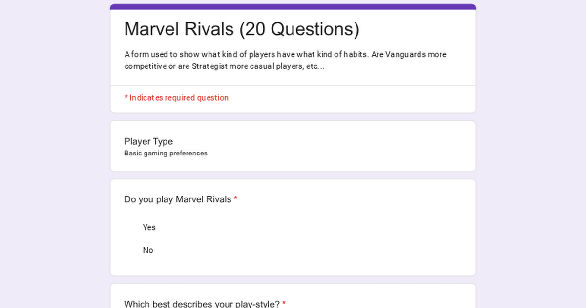 20 Question Questionnaire (Marvel Rivals and COD like) [COD]