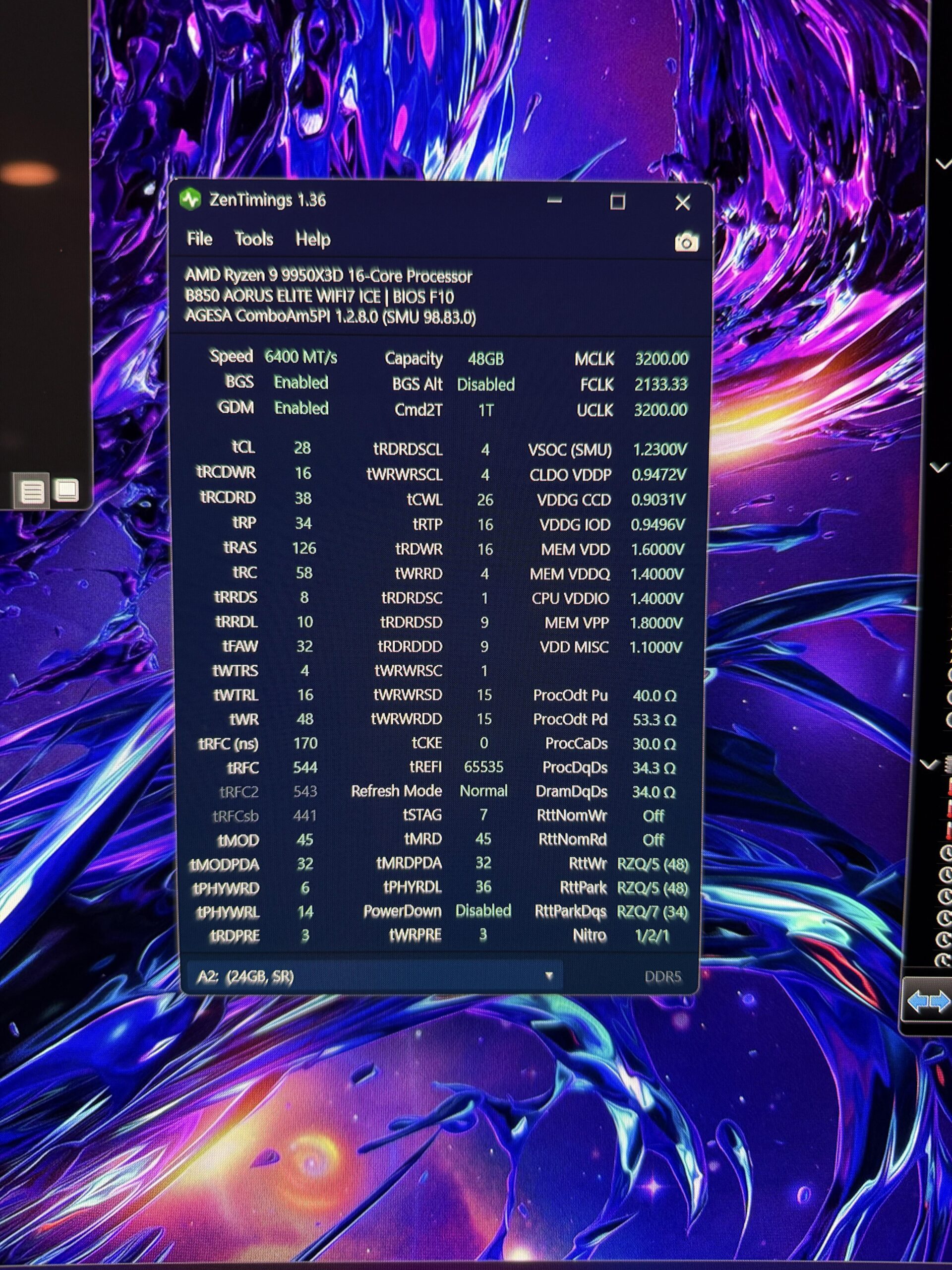 RAM: So I’m running my 48gb Hynix M kit with Buildzoids same timings he did for a 48gb Kingbank kit (same as mine). Tested with multiple rounds of TM5 anta extreme and no errors. Thermals are great, 40-43c while stress testing and gaming.