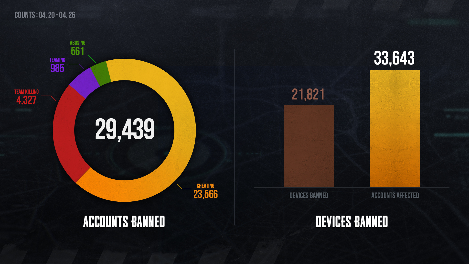 We are sharing the banned players list for the past week to raise awareness about the abuse of illegal software and the consequences of misconduct. Please refer to the list of players who have been banned for violating rules of conduct.