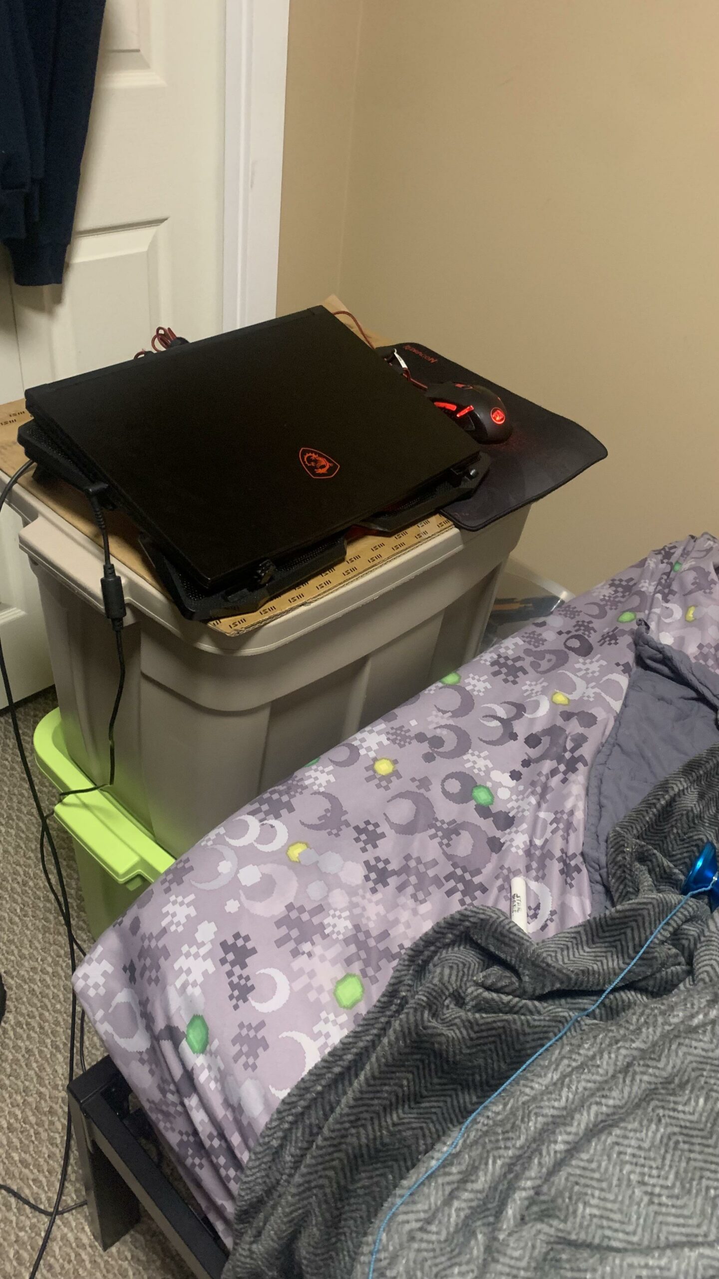 I have a very similar setup with my 14.6 Asus Vivobook when I don’t feel like getting out of bed though It’s a touch screen, pretty much eliminating the need for my mouse all together. It’s not quite a “gaming laptop” with an i3 13100 and 4gb ram just something to play OSRS on and occasional Zoom meeting