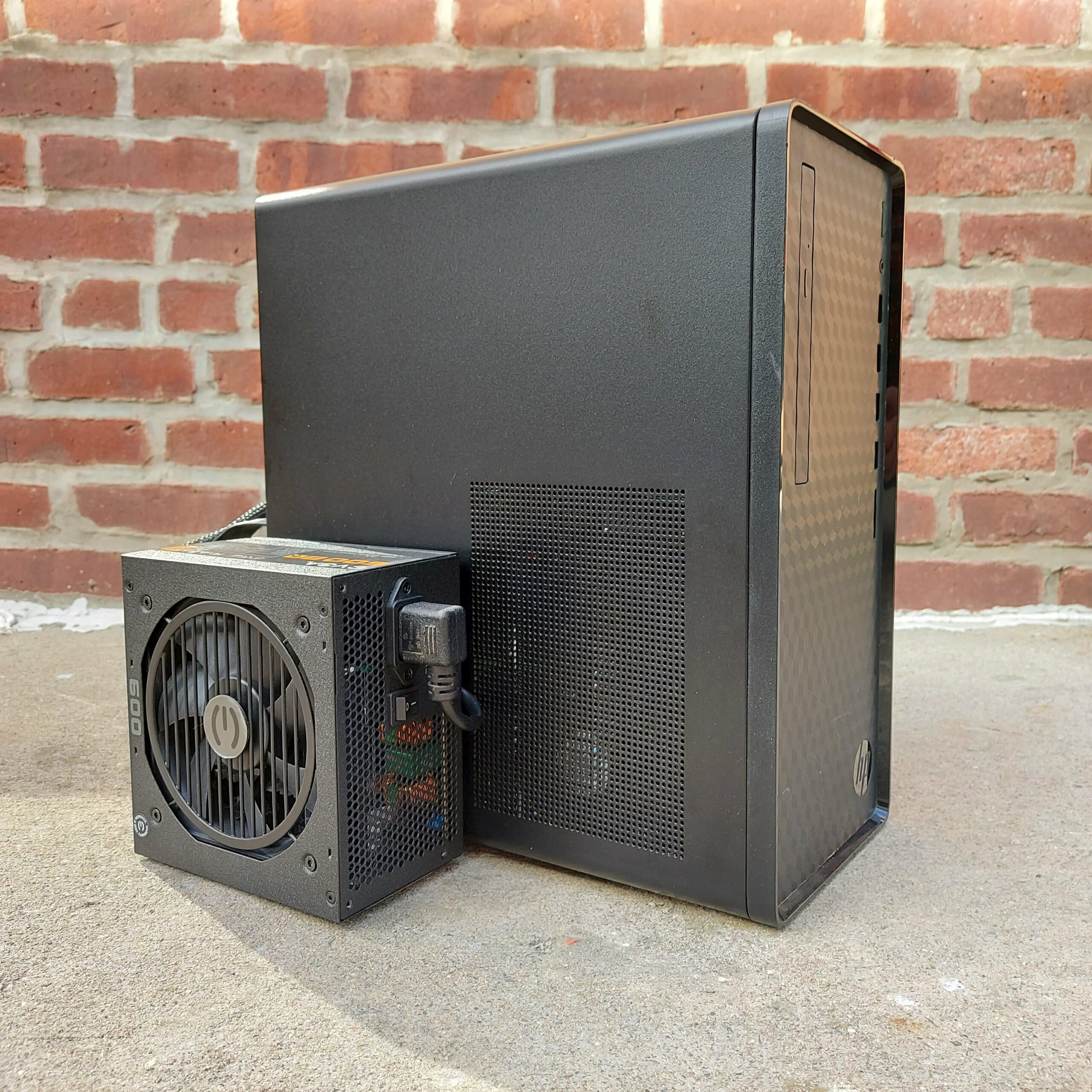 Naturally, everything in the damn machine is proprietary. It comes with a 180w PSU and there was no way to upgrade it. Only way to make his gaming dreams come true was to mount an external PSU to power the 5700XT I managed to fit in there.