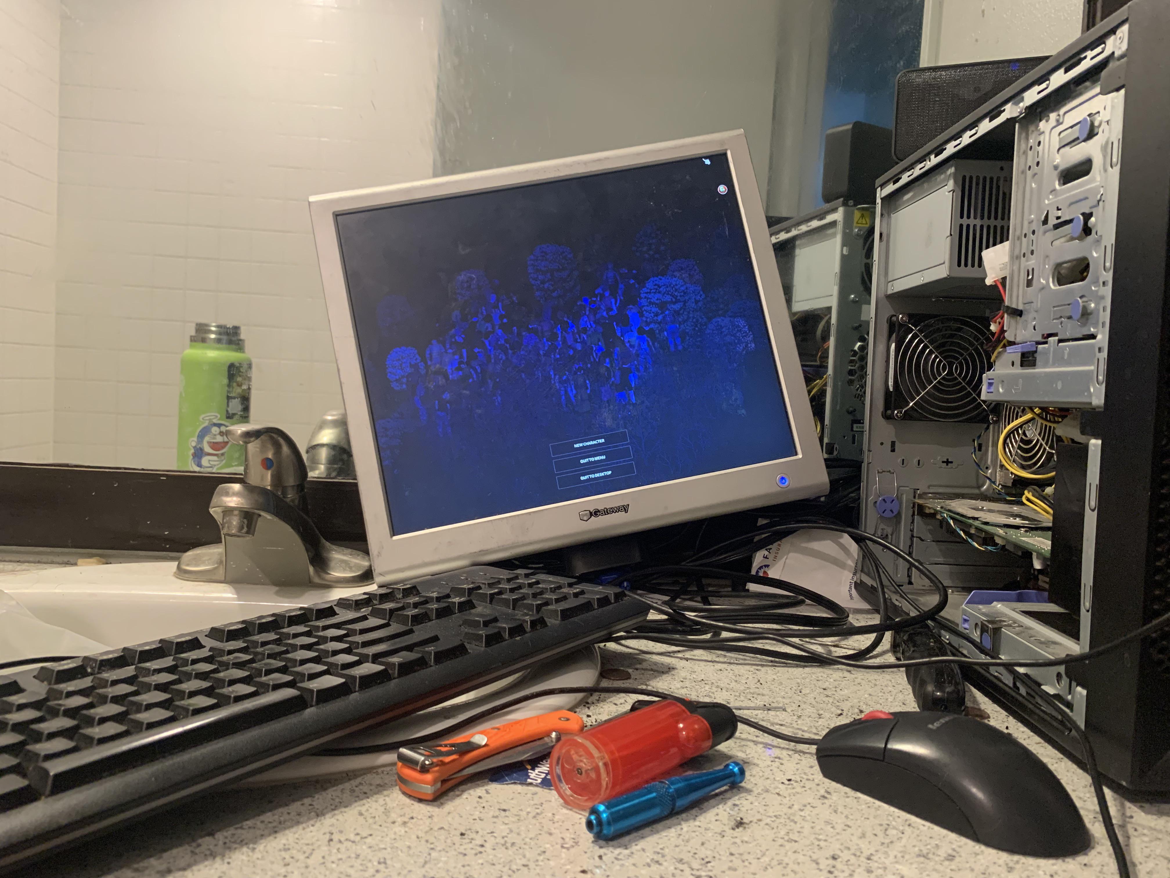 Share Facebook Twitter Pinterest LinkedIn In my shack, my outlets work best in the bathroom Shitty Battle StationsShitty Battlestations 2 Comments Inner-Entertainer-61 3 years ago Now you can do a 24 hour stream without leaving your ‘chair’! Loki_the_Smokey 3 years ago At least you always have a full bottle of water. Stay hydrated! Write A CommentYou must be logged in to post a comment.