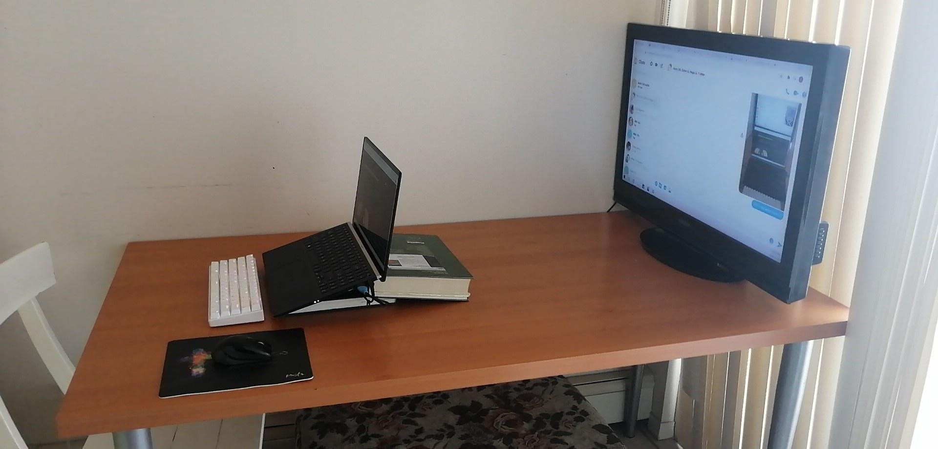When you don’t have a monitor so you use a tv but its too big so you have to push it all the way back and use 17 books to make the perfect angled laptop stand that sits flush with the tv when viewed at the right angle :)